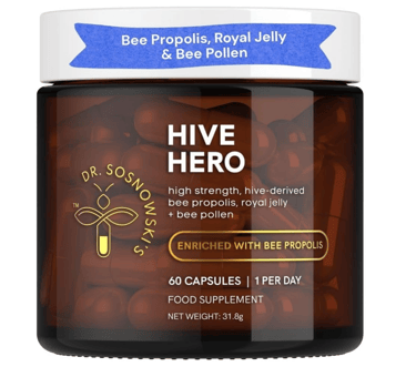 3-in-1 Hive Complex: A powerful daily supplement combining Bee Propolis, Royal Jelly and Bee Pollen delivering cleaner energy, mental clarity and free radical support.